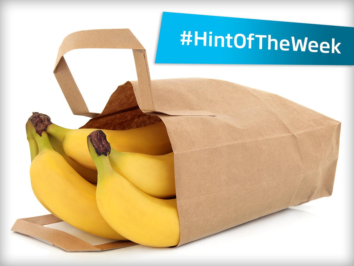 Roll up the end of the paper bag in order to trap the ethylene that's released around the unripe bananas.