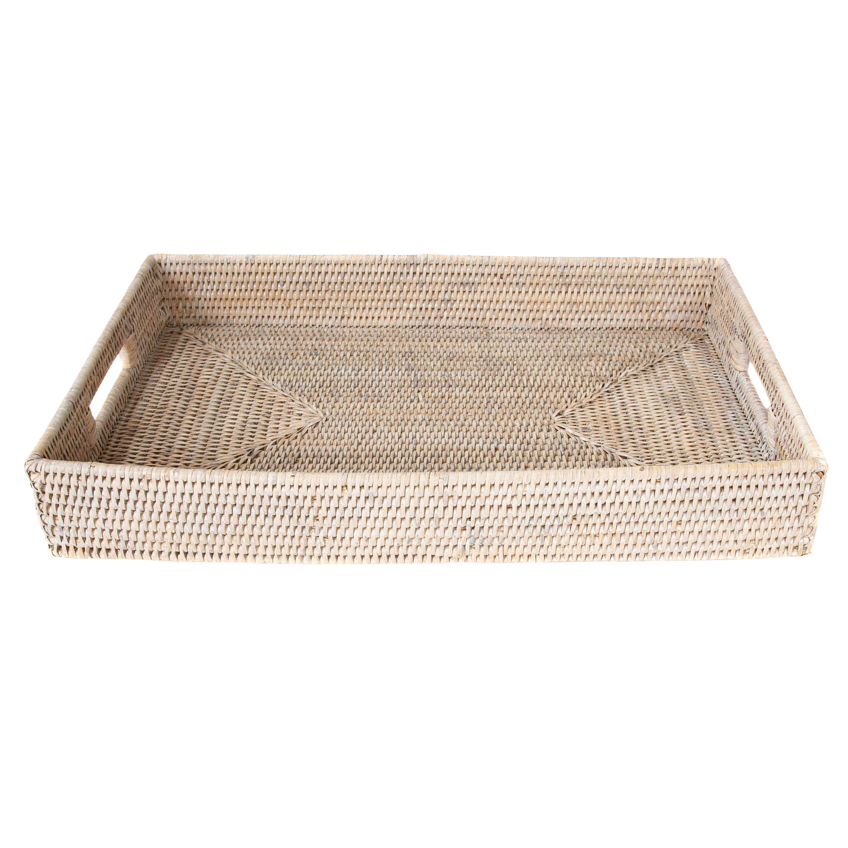 23.5 wide x 18.5 deep x 5.5 high. This shade is your best match. 22.75 wide x 18 deep x 5.25 high. Add to favorites rectangle whitewashed rattan tray, straw rattan serving tray, woven tray with handle,tray for coffee table,handwoven tray,round natural. Large rectangle wicker rattan tray | decor and serving platter with handles.